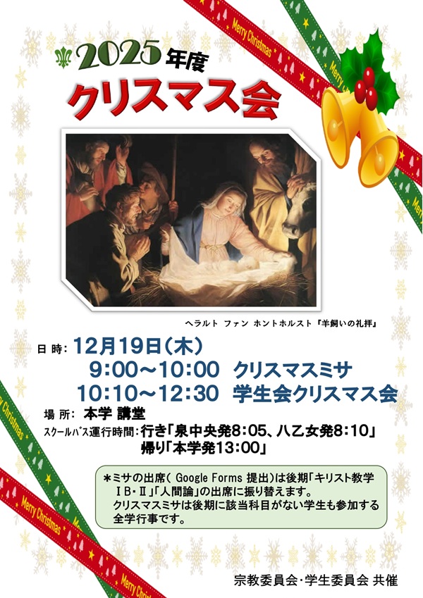 2025年度クリスマスミサ・学生会クリスマス会のお知らせ