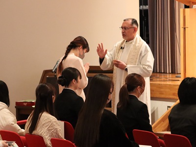 12月17日(水)、本学講堂にてイグナシオ・マルティネス神父様(グアルダルペ宣教会司祭)司式で執り行われました。