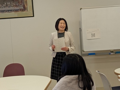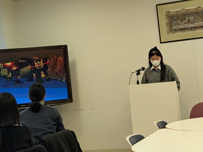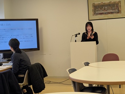 1月8日(木)14:40~16:10、「ビジネス・インターンシップⅡ」(グローバル・スタディーズ学科3年、担当:小形教授)履修者4名が夏休みに参加したインターンシップや会社研究の報告を行いました。