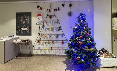 本学宗教委員会の主催により、アドベント(待降節)の期間に合わせて、5号館3階の壁面に装飾した「サンタさんへのお祈りカード」は、加藤学長の手を通じて仙台修道院でお祈りいただき、マリア様へ捧げられました。このたびアドベント企画にご参加及びご協力いただいた皆様に、心から御礼申し上げます。