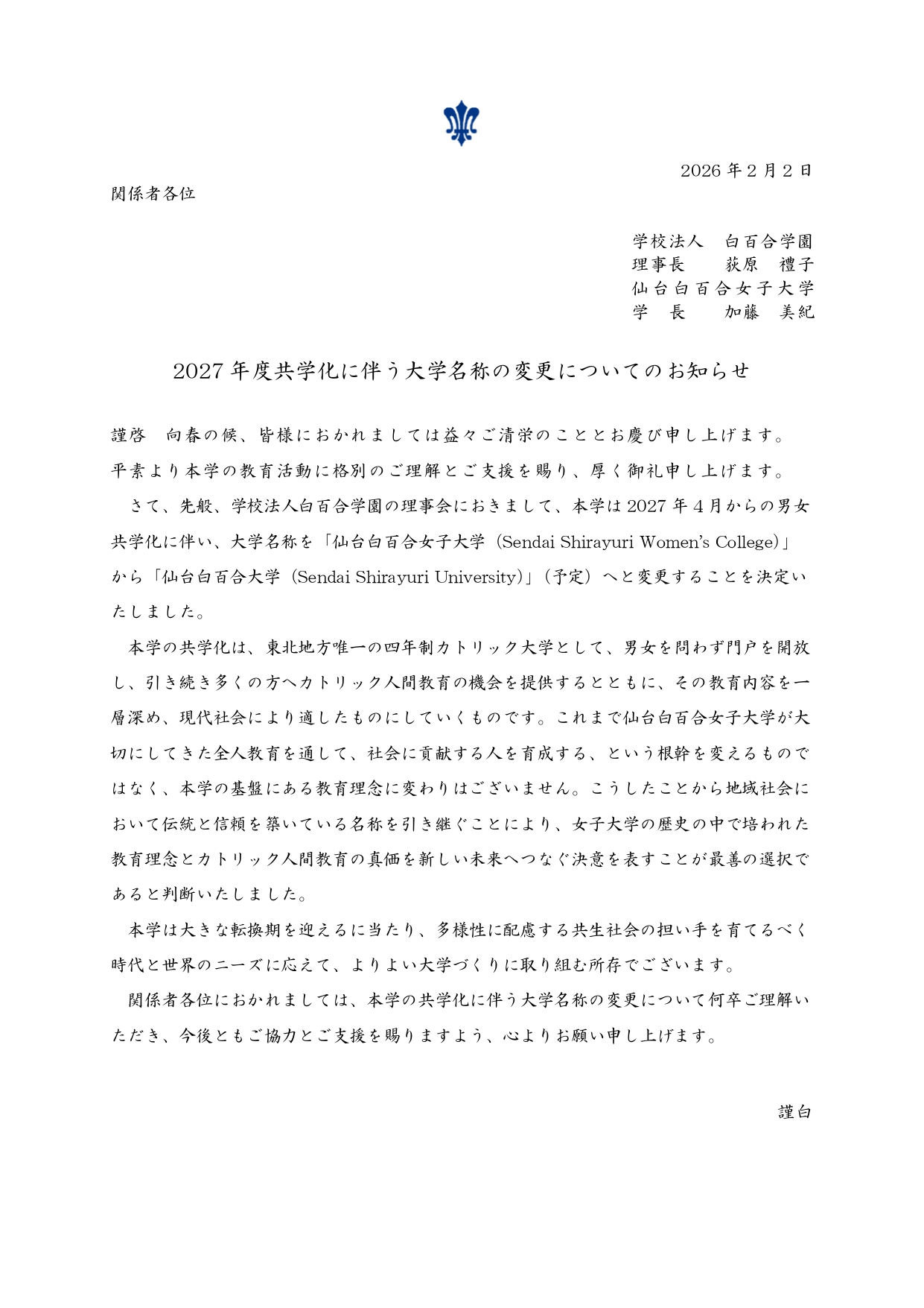 仙台白百合女子大学公式Webサイト。宮城県仙台市泉区。人間学部(グローバル・スタディーズ学科、心理福祉学科、人間発達学科、健康栄養学科)のご紹介。