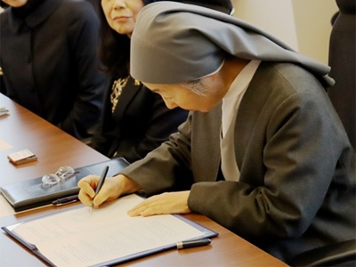 当日は、仙台育英学園高等学校の加藤雄彦校長と仙台白百合女子大学の加藤美紀学長が、協定に基づく覚書を取り交わしました。